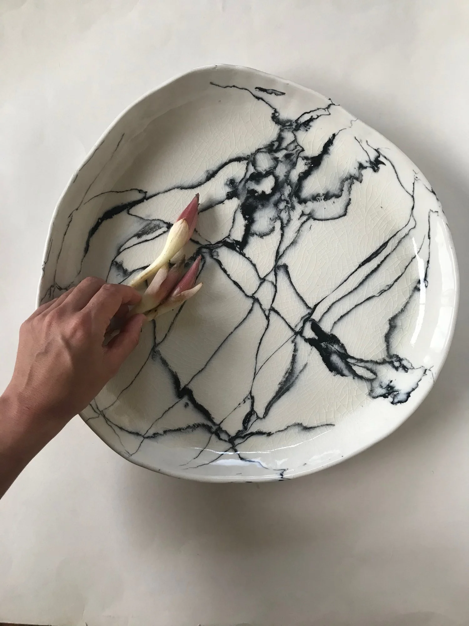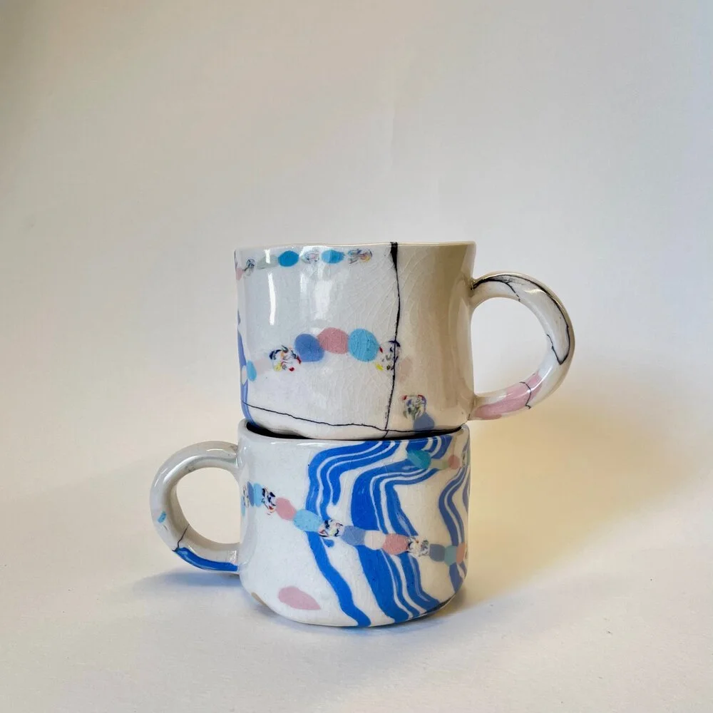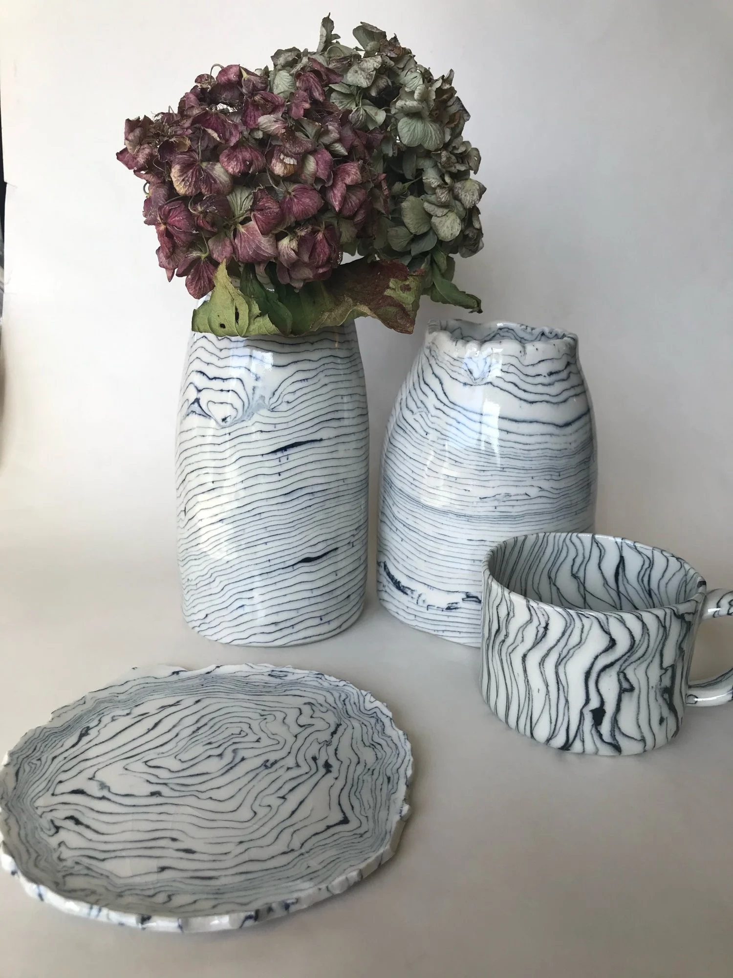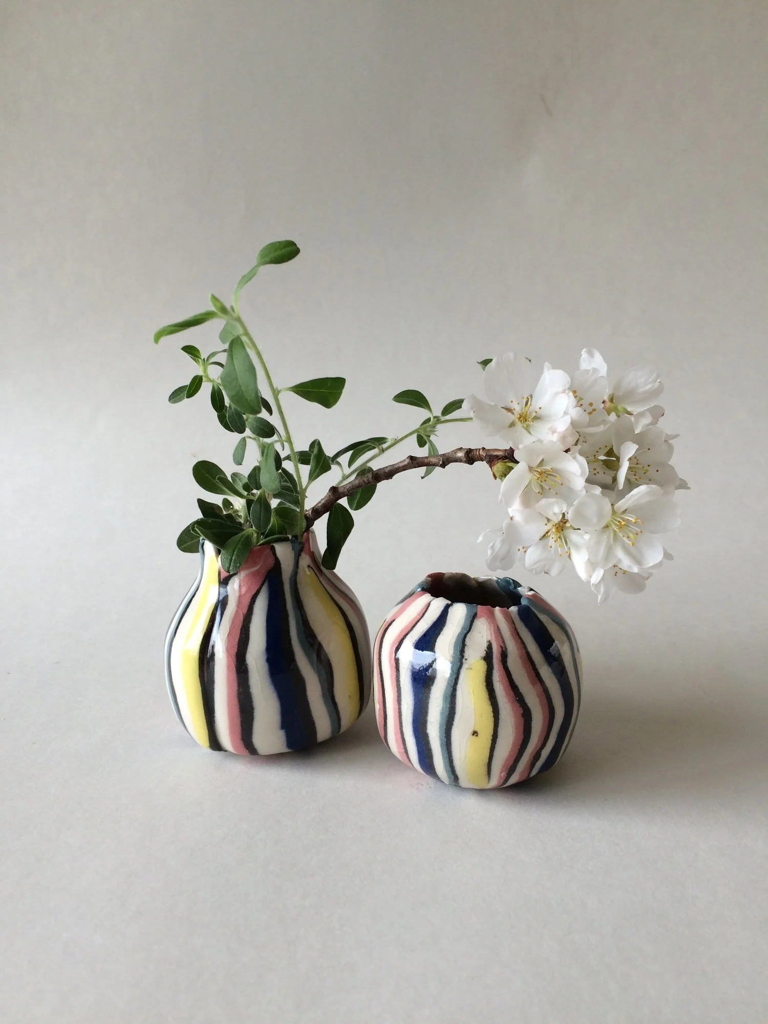 After her formal training in Japan, Risa returned to New York, where she developed her signature style that uses nerikomi in unconventional ways. The traditional Japanese technique involves cutting and stacking colorful clays to form patterned blocks and create marbling effects.