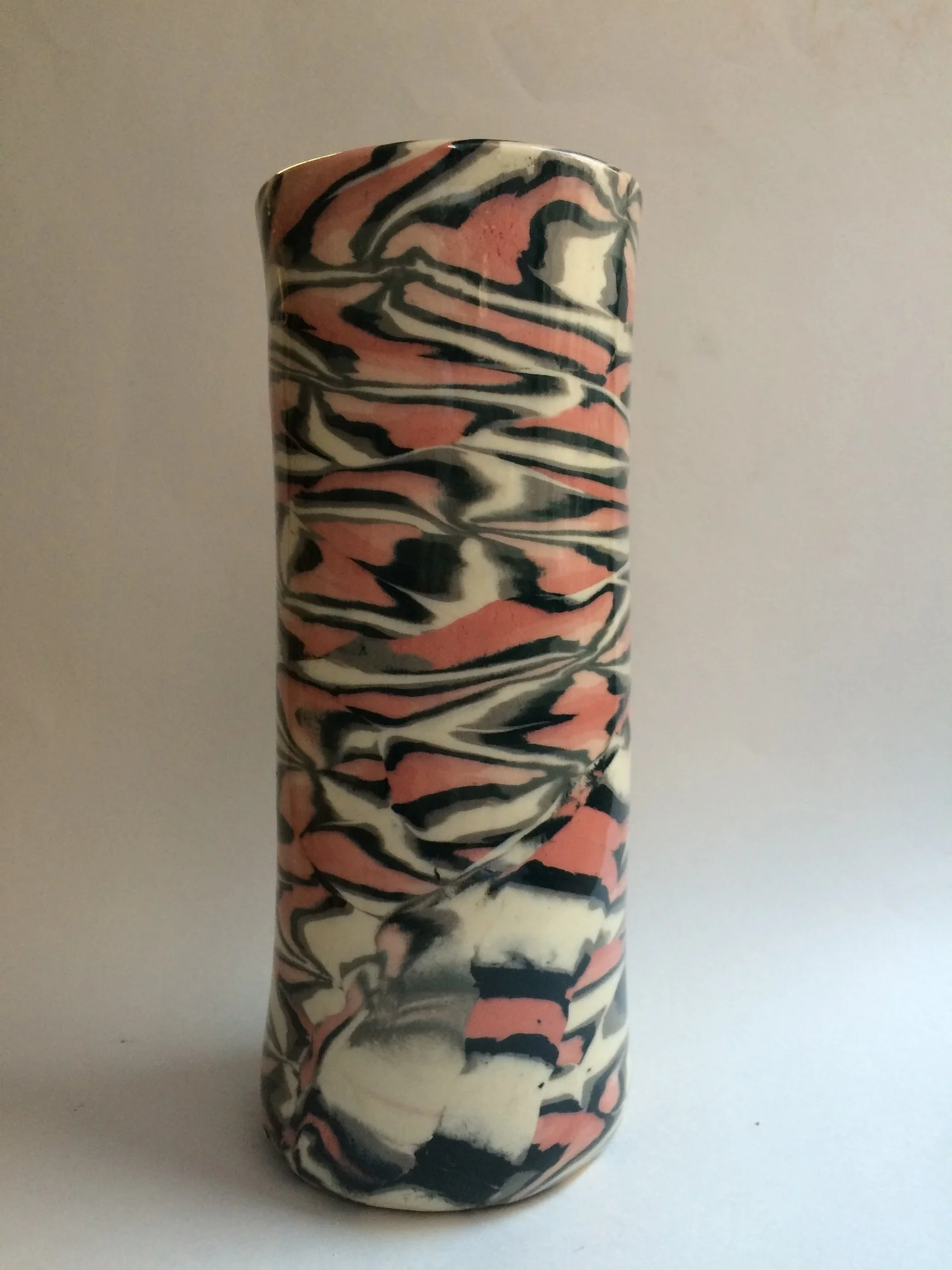 I was like, OK, maybe since I’ve been doing nerikomi for about ten years, maybe I’ve run my course, even though I really don’t feel like I have. I used to have so many ideas constantly that I would end up making multiple blocks [of colored nerikomi clay] at the same time because I was like, Oh, this is going to be dope, oh shit, I’m gonna do this. I was really, really excited when I would come in and then make stuff.