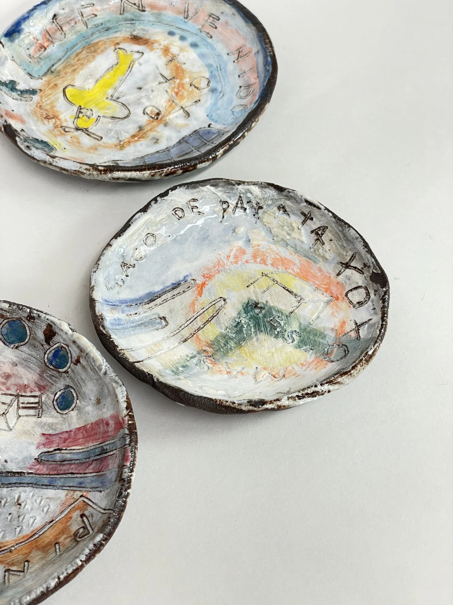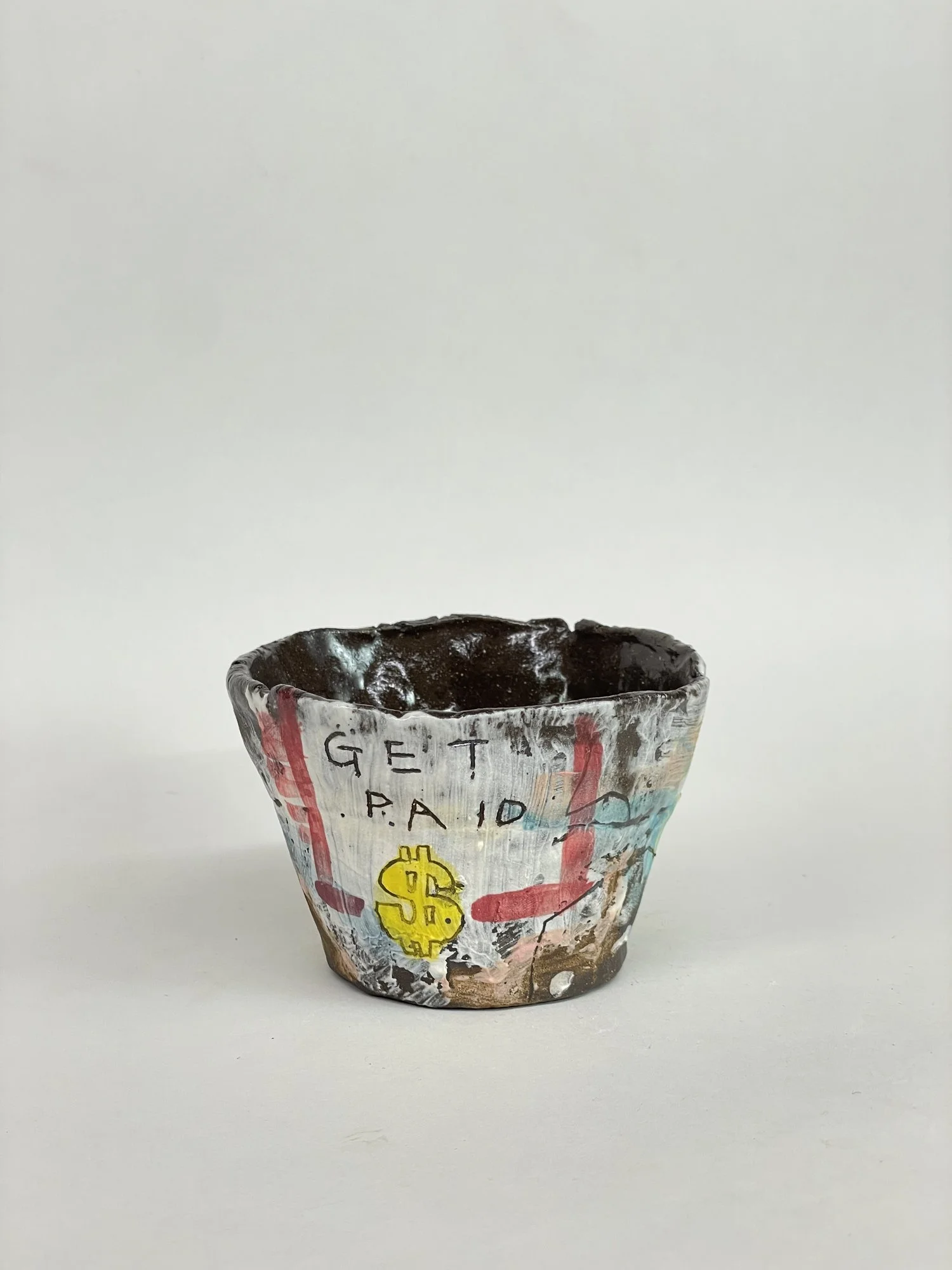 I never had a Reddit thread [to reference] that was a Q&A, AMA, all of this bullshit. I was like, I’m going to make this thing and it’s going to be dope, and I’d have to wait, like, three weeks for that shit to dry and then fire it and then glaze it, and then nothing comes out. In the beginning since I was so poor, I didn’t use the colors properly, I was so budget with it. I was like, Let me just sprinkle some like Salt Bae. I’m just gonna sprinkle some because I need this to last for, like, eight years. I would wrestle with myself, like, Do I stay broke? Do I take this chance and put more pigment in? This is my month’s savings, and nothing might even come out. The money-struggle part was a big thing. At the same time it was me being brave. Do you put your month’s paycheck into a lump of clay just for your satisfaction? Yes, you do. If you don’t take chances like that, I think you’ll never learn because you’re always in asafe zone. You never ask yourself really hard questions.
